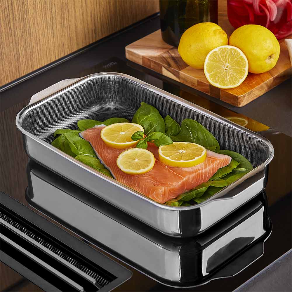 Madlavning bliver en leg med Hâws Santo Hybrid ovnfast fade. Fadene er fremstillet med en hybrid keramisk-belægning, der sikrer jævn varmefordeling og nem rengøring. Perfekte til ovnretter som lasagne, steg, gratin og meget mere. Tåler ovn, mikroovn og opvaskemaskine – et must-have i ethvert køkken. Skabt til at løfte dine madlavningsoplevelser til nye højder. Med sin enestående kombination af funktionalitet og æstetik vil dette ovnfaste fad hurtigt blive uundværlig i dit køkken. Det hele starter med en jævn varmefordeling for at sikre perfekt stegning og bagning. Fadet tåler også at du sikkert kan bruge metalredskaber, så du kan anvende knive, gafler og endda elektriske mixere direkte på overfladen. Fadet er utroligt alsidig og kan bruges både på komfuret og i ovnen uden problemer. Den virker på alle typer af kogeplader og er ovnsikker op til 265 grader. De to fade kan stå på den samme rist i ovnen.