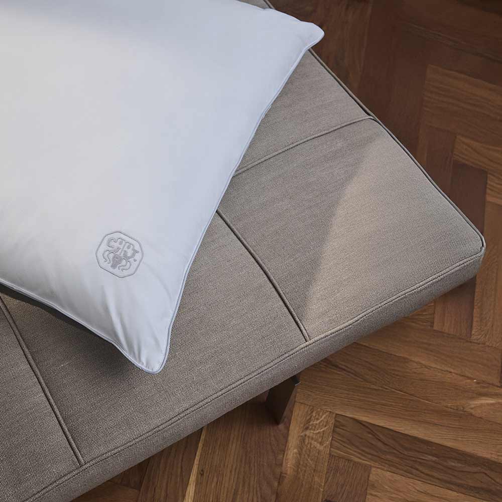 For at give optimal komfort og støtte har puderne tre separate kamre. Dynen og puden bærer Georg Jensen Damasks ikoniske logo som et diskret broderi – et symbol på kvalitet og omhyggelighed. Puden i Medium er en god all-round højde med optimal støtte.