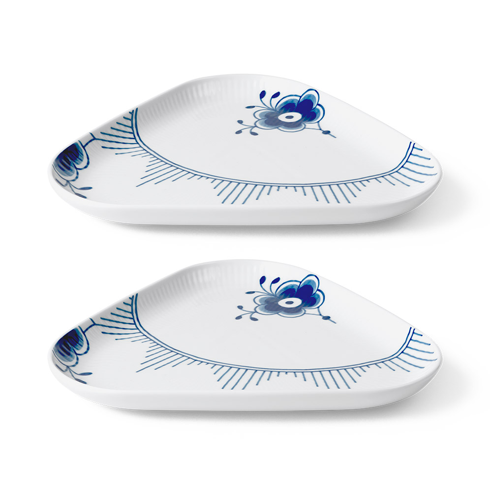 2 stk. Royal Copenhagen Blå Mega riflet trekantet fad Ø23 cm