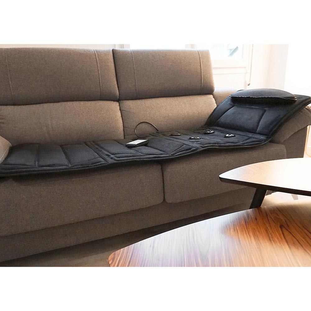 En komfortabel elektrisk massagemåtte med en godt polstret blød vævning, som takket været de 10 motorer er utrolig effektiv til at nyde en komplet afslapning i hele kroppen. Den vibrerende massage byder på en behagelig fornemmelse af afslapning og velvære. Den kan bruges mens du sidder eller ligger ned, og den har en varmefunktion med fjernbetjening, samt en lomme til fjernbetjeningen. Den virker, når du sætter den til en strømforsyning (inkluderer adapter).