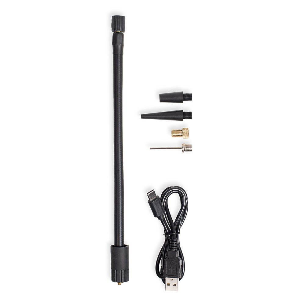 Kompressoren er udstyret med to kraftige 2000 mAh batterier og oplades nemt via det medfølgende USB-kabel.