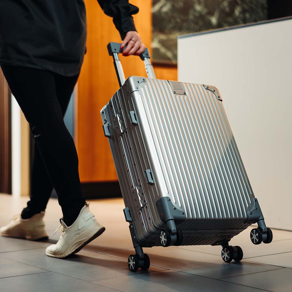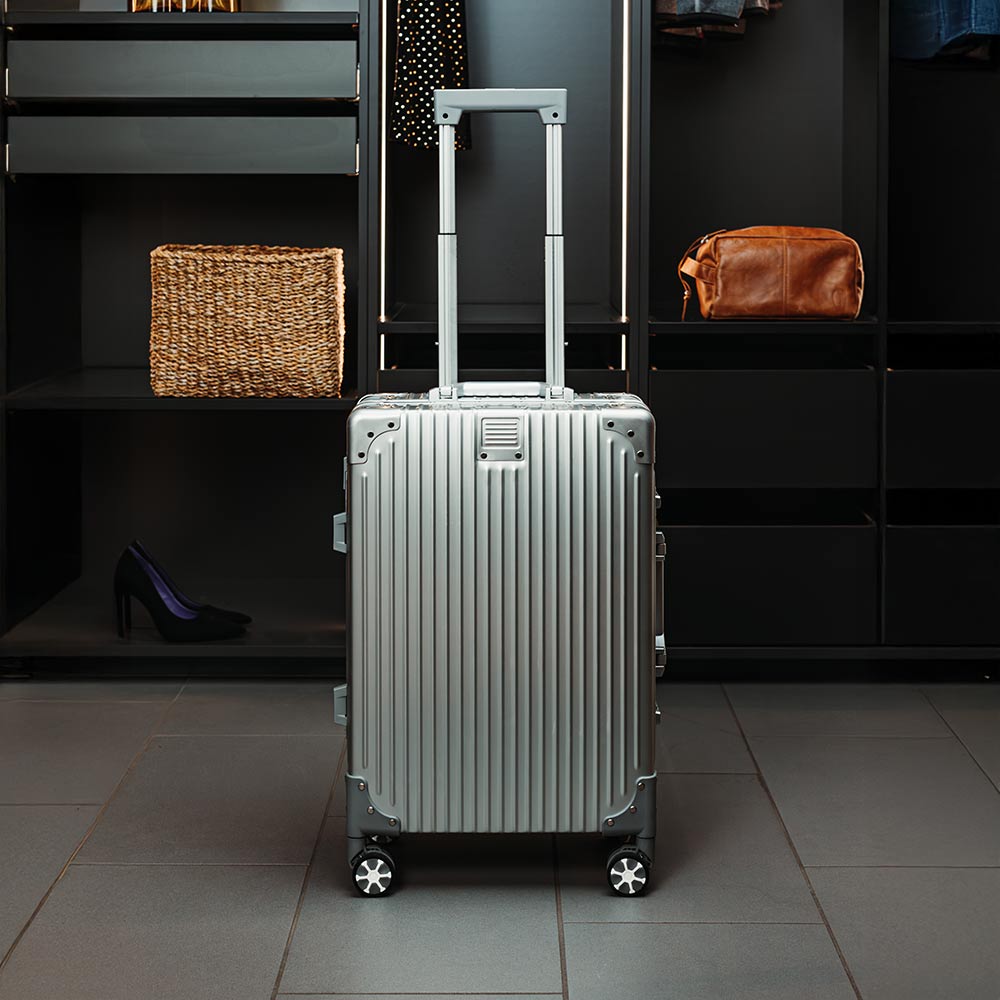Denne eksklusive kabinekuffert er skabt til at kombinere stil og holdbarhed. Den er fremstillet af slidstærkt aluminium af høj kvalitet og kan klare tidens tand og rejsens strabadser. Udstyret med fire glatte, let rullende hjul giver den dig en nem og behagelig oplevelse, når du navigerer gennem lufthavne og andre destinationer. Med målene B39 x D22 x H59 cm passer den perfekt til de fleste flyselskabers kabinekrav. Den stilrene æstetik og robuste konstruktion gør den til den ideelle rejsemakker, uanset om turen går til et møde i byen eller en afslappende weekend væk.