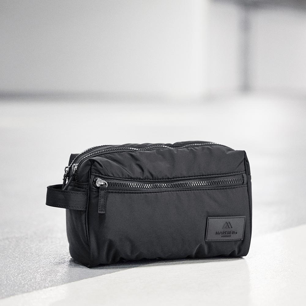 Toilettasken har to store primære lommer, som hver lukkes med lynlås. Derudover er der en praktisk lynlås. More Weekend Bag og toilettasken er designet i Markbergs populære puffer-look som er en del af brandets signaturprodukter.