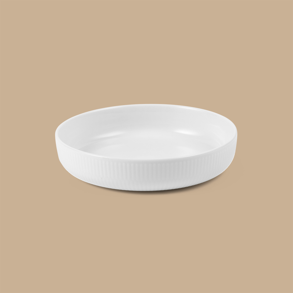Dette smukke, ovnfaste fad fra Royal Copenhagen Hvid Riflet kollektion er, med sin hvide overflade, den perfekte baggrund for en hver type servering. Langs kanten pynter de ikoniske riller, som kendetegner Hvid Riflet-serien og gør fadet til en favorit på både hverdags- og festbordet. Denne mindre version af Hvid Riflet ovnfast fad er på én gang et smukt og praktisk stykke porcelænshåndværk. Størrelsen er oplagt til enkelte serveringer eller mindre kager eller tærter, og fadets enkle design er en smuk tilføjelse til ethvert middagsbord.