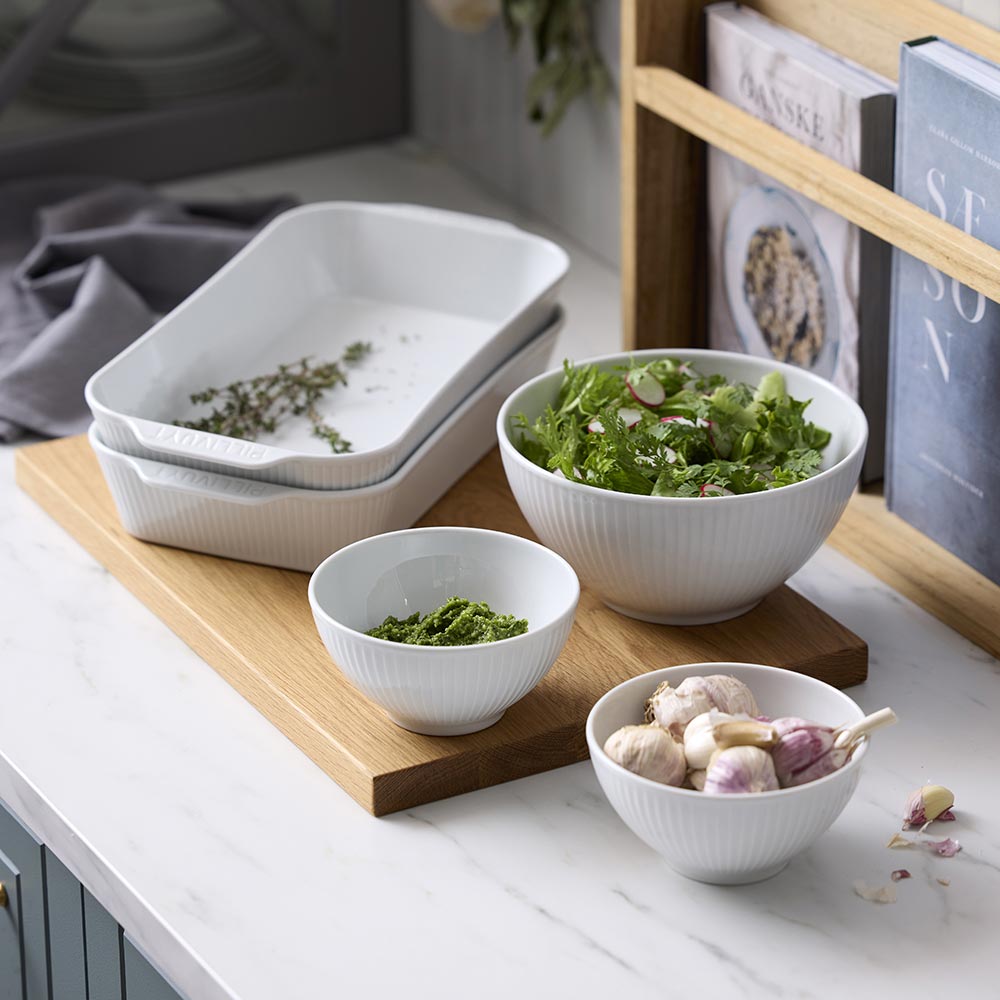 Pillivuyts fade og forme præsenterer maden på smukkeste vis og skaber en fuldendt kulinarisk oplevelse fra ovn til bord. Porcelænet er ikke kun særdeles modstandsdygtigt over for slag og stød. Pillivuyts ovnfaste porcelæn tåler også termisk chok fra -30 °C til +350 °C – så du kan tage fadet ud af fryseren og sætte det direkte i en varm ovn.