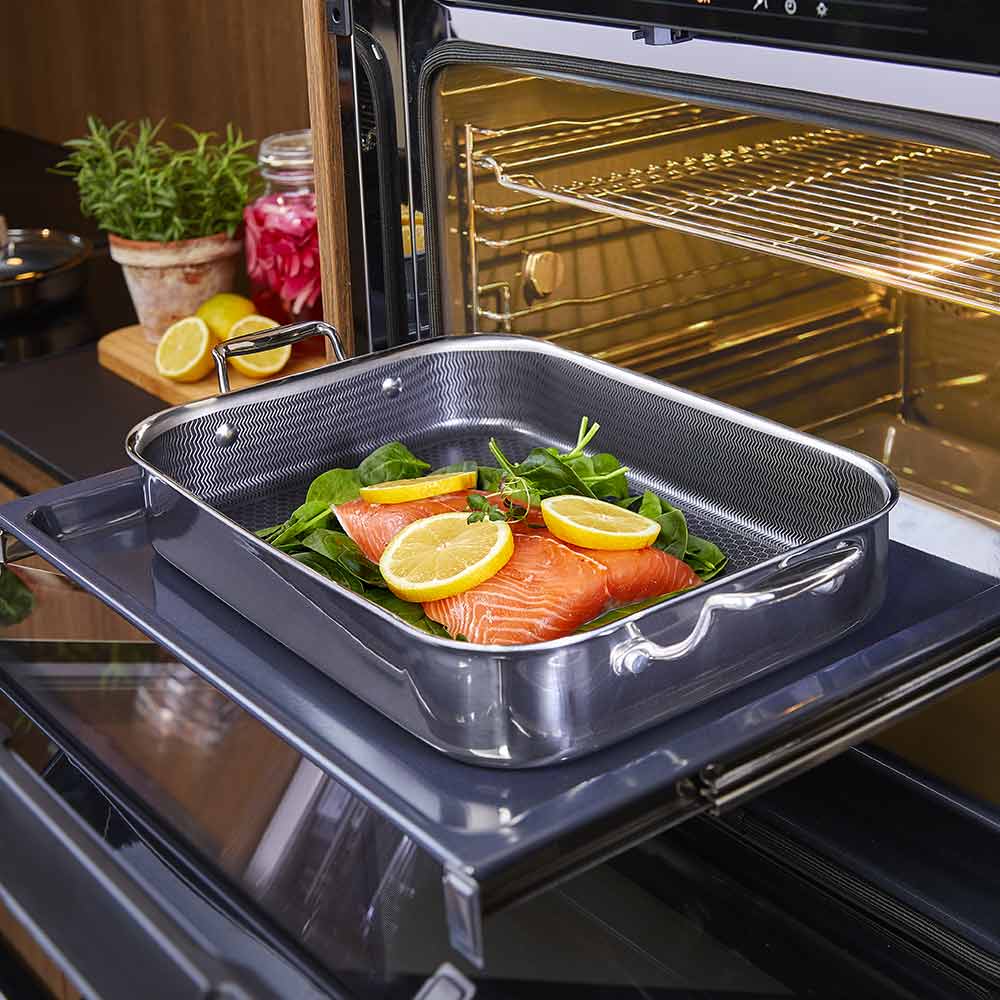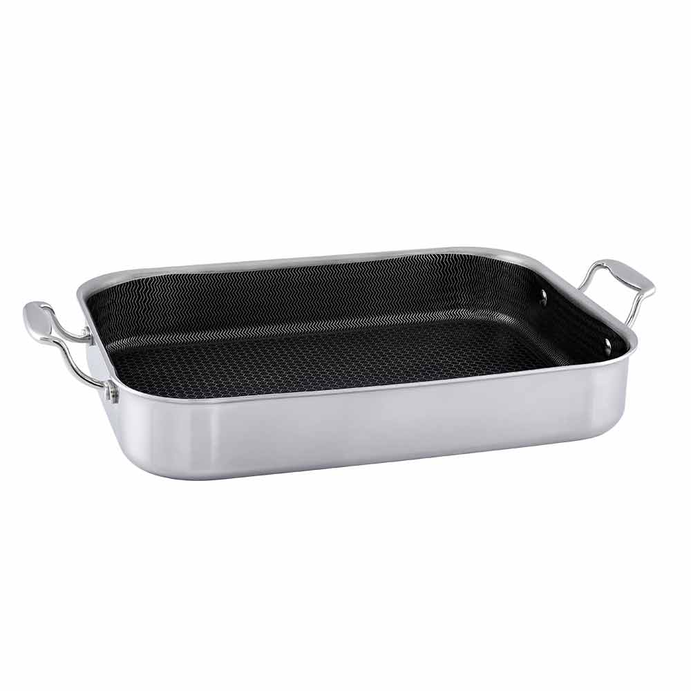 Madlavning bliver en leg med Hâws Santo Hybrid ovnfast fad. Fadet er fremstillet med en hybrid keramisk-belægning, der sikrer jævn varmefordeling og nem rengøring. Perfekte til ovnretter som lasagne, steg, gratin og meget mere. Tåler ovn, mikroovn og opvaskemaskine – et must-have i ethvert køkken.  Skabt til at løfte dine madlavningsoplevelser til nye højder. Med sin enestående kombination af funktionalitet og æstetik vil dette ovnfaste fad hurtigt blive uundværlig i dit køkken. Det hele starter med en jævn varmefordeling for at sikre perfekt stegning og bagning. Fadet tåler også at du sikkert kan bruge metalredskaber, så du kan anvende knive, gafler og endda elektriske mixere direkte på overfladen. Fadet er utroligt alsidig og kan bruges både på komfuret og i ovnen uden problemer. Den virker på alle typer af kogeplader og er ovnsikker op til 265 grader.